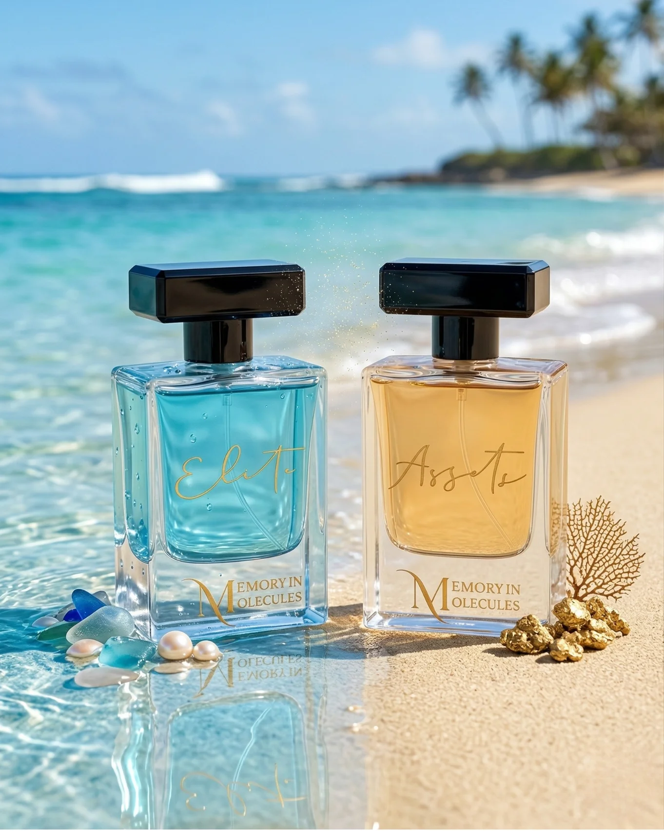 Two full-size fragrances, one sharp and one refined — Sea Blue for confident nights, Golden Reserve for quiet luxury.